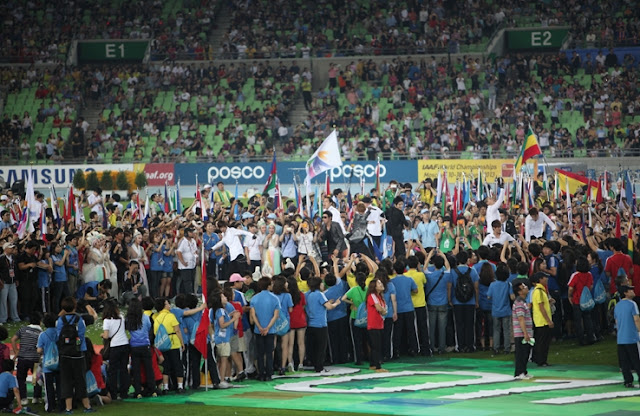 When their fantastic performance was over, the film compiled from highlights of the best Championships moments was played on the Daegu stadium's giant screen.